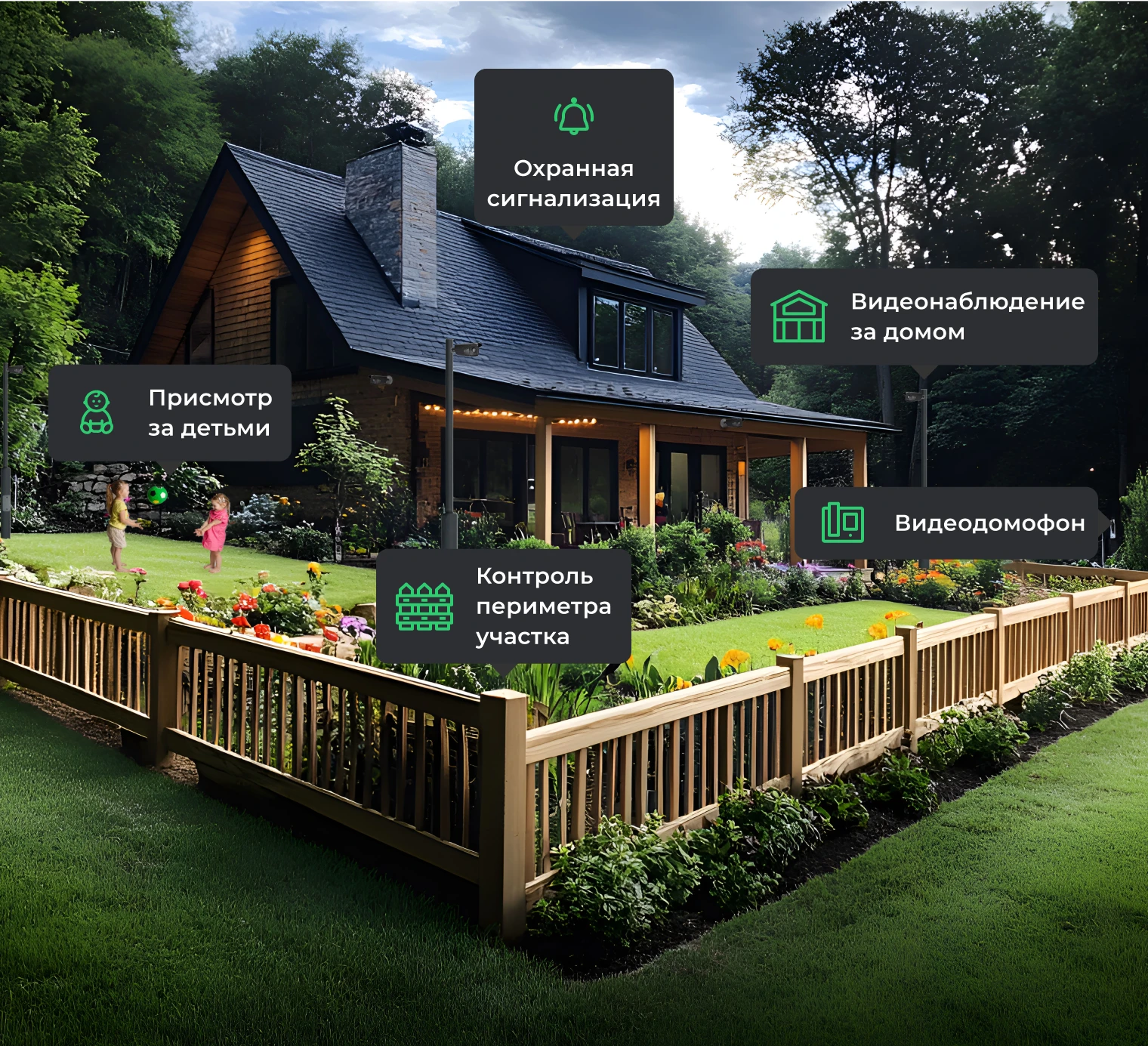 Управляйте безопасностью со смартфона: следите за территорией, контролируйте доступ и управляйте устройствами одним касанием.