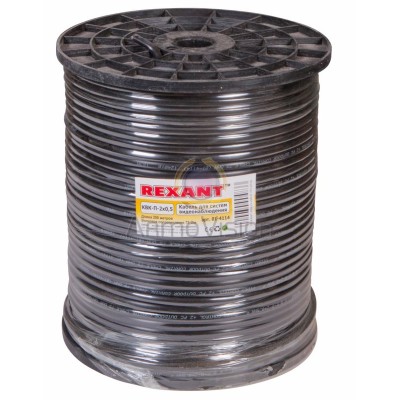 Кабель 01-4114 для видеонаблюдения КВК-П-2*0,50мм D=7мм черный многожильный REXANT 200м
