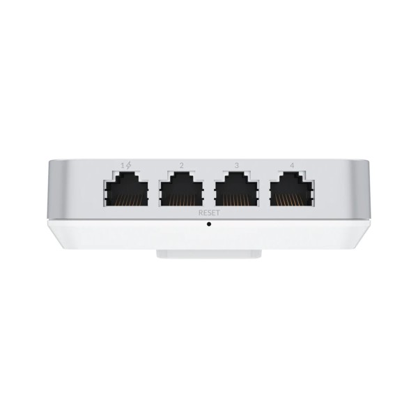 К Интернету U6 In-Wall подсоединяется гигабитным портом на прилегающей к стене панели. Питание осуществляется по этому же порту в пассивном режиме PoE.