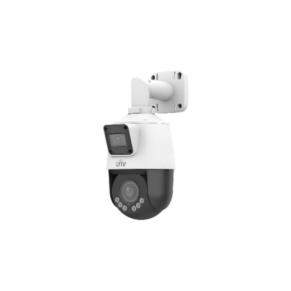 Сдвоенная видеокамера IP Мини-PTZ, 2 x 1/2.8", 2 x 2 Мп КМОП @ 25 к/с, ИК-подсветка до 10м (обзорная камера), ИК-подсветка до 50м (поворотная камера), подсветка видимого спектра до 10м.(поворотная камера), LightHunter 0.002 Лк @F1.6, объектив 2.8-12.0 мм моторизованный с автофокусировкой (поворотная камера), объектив 2.8 мм (обзорная камера), WDR (обзорная камера), DWDR (поворотная камера), 2D/3D DNR, Ultra 265, H.265, H.264, MJPEG, 2 потока, 2 (два) встроенных микрофона и динамик,защита периметра (пересечение линии, вторжение, вход, выход из зоны, захват лиц, подсчёт людей), аудиодетекция, поддержка Micro SD карт памяти до 256 Гбайт, диапазон панорамирования 345°, диапазон наклона -10~100°, число предустановок 256, кнопка сброса, IP66, -30~+60°C, Deep learning(Защита периметра)